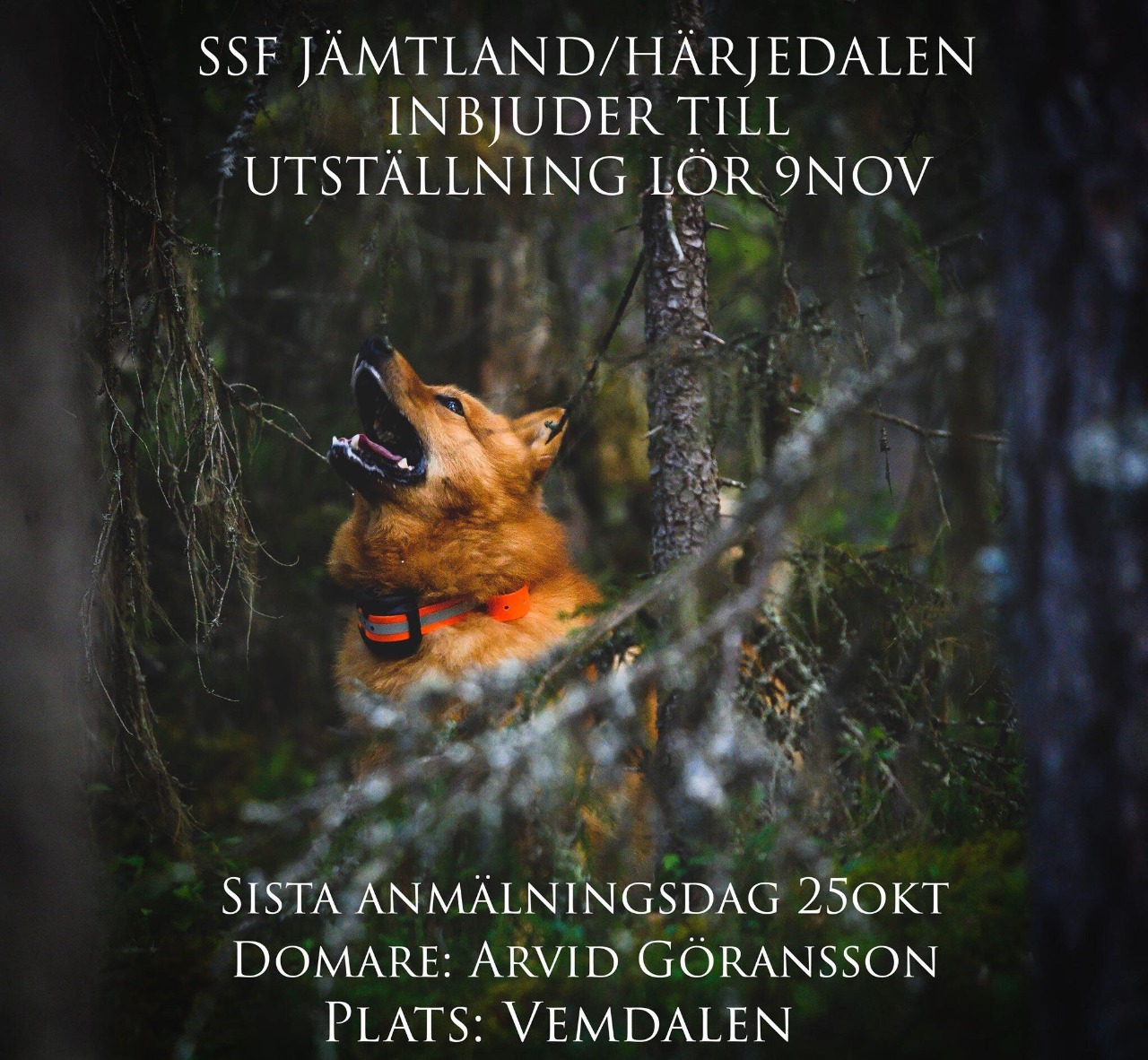 Glöm inte bort att anmäla din hund till utställningen i Vemdalen den 9/11 2019. Anmälningsinfo finns här: https://ssf-riks.se/utstallningar/